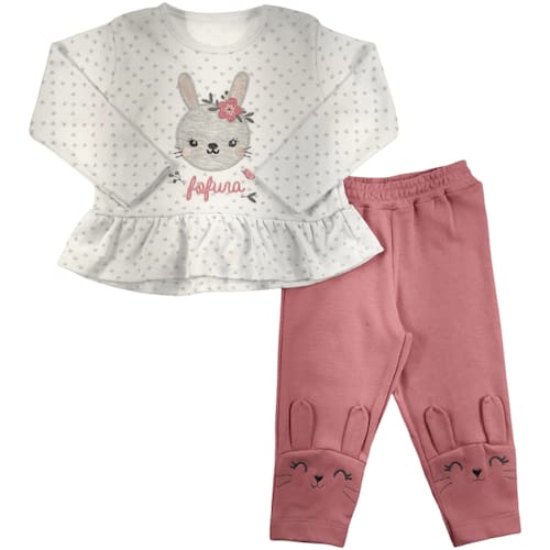 contém: - 1 bata longa bebê branco ; - 1 calça rosa bordado coelho;