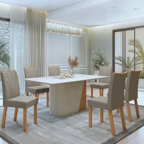 Transforme sua sala de jantar com o Conjunto Luar 170cm ! Com um design sofisticado e amplo, ele acomoda confortavelmente até seis pessoas, proporcionando momentos inesquecíveis em família. A mesa combina um visual moderno com um tampo resistente e elegante, enquanto as cadeiras são ergonômicas e aconchegantes, garantindo conforto prolongado. Seja para jantares especiais ou o dia a dia, esse conjunto traz harmonia e requinte ao ambiente. Aposte nesse conjunto que tem beleza, funcionalidade e durabilidade, tornando cada refeição ainda mais especial!