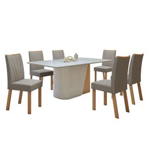 Conjunto Luar 170cm Tampo MDF com Vidro e 6 Cadeiras Apogeu Amêndoa Clean/Off White/Capuccino - Marrom