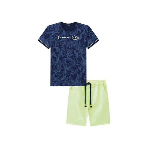 Conjunto Luc Boo Camiseta e Bermuda Estampa Floral Marinho/Amarelo