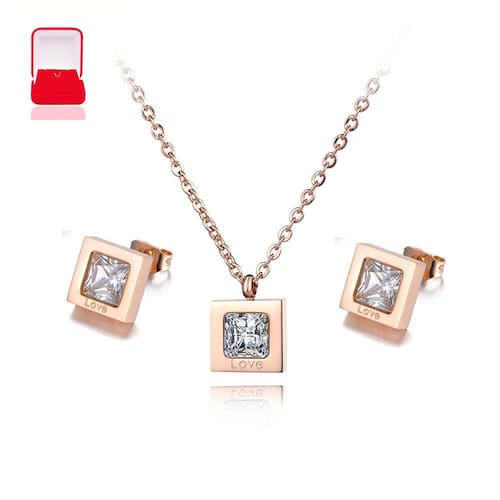 Lindo colar e brinco LOVE banhado a ouro rosê com cristal CZ