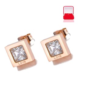 Brinco: Banho: ouro rosê Material: aço inox e pedra diamante cz cúbico Tamanho: 8 mm