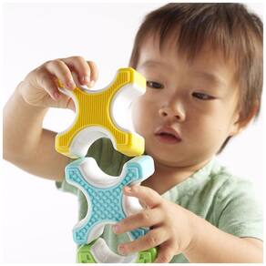 O Guidecraft Grippies Stackers é um brinquedo STEM de construção magnética desenvolvido para bebês e crianças a partir de 18 meses, combinando exploração tátil, encaixes magnéticos e primeiros conceitos de construção em 2D e 3D. O conjunto traz blocos em formato de X com superfícies texturizadas e cilindros em dois tamanhos, que podem ser empilhados, equilibrados, encaixados e aninhados, favorecendo coordenação motora fina e raciocínio espacial inicial.?