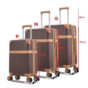 Conjunto Mala Viagem Santino Krabi Pequena, Média e Grande Cor: Bronze Conjunto de Malas Krabi 3 Peças Rígida 360 Santino Viajar com praticidade e estilo ficou ainda mais fácil com a linha Krabi Santino. Produzidas em ABS de alta qualidade com detalhes em material sintético elegante, as malas oferecem resistência, durabilidade e um design moderno que se destaca em qualquer viagem. O conjunto conta com três tamanhos diferentes P, M e G para atender todas as suas necessidades, desde viagens rápidas até longos trajetos. Todas possuem rodas com giro 360, que garantem mobilidade leve e silenciosa, além de alça telescópica regulável e acabamento emborrachado para maior conforto no manuseio. Segurança reforçada: Mala pequena com fechadura numérica integrada. Malas média e grande com cadeado TSA, alça lateral, base de apoio e sistema expansível de até 20% mais espaço. Organização interna completa: Forro em tecido de alta qualidade Bolso divisor com zíper Bolso telado Elásticos de fixação com trava Dimensões e capacidades: Pequena 22 : 57x36x24cm Peso 2,83kg Até 10kg Média 24 : 66x45x27cm Peso 3,69kg Até 23kg Grande 28 : 76x52x30cm 105cm com carrinho Peso 4,45kg Até 30kg Ideal para quem busca um conjunto resistente, espaçoso e sofisticado com ótimo custo-benefício, o Conjunto de Malas Krabi Santino é a escolha certa para transformar sua experiência de viagem. Marca: Não Informado