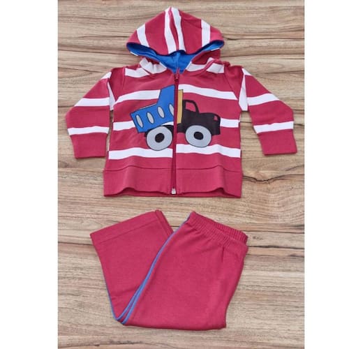 Deixe o look do seu pequeno ainda mais moderno e confortável com o Conjunto Masculino Infantil Listras Vermelho.