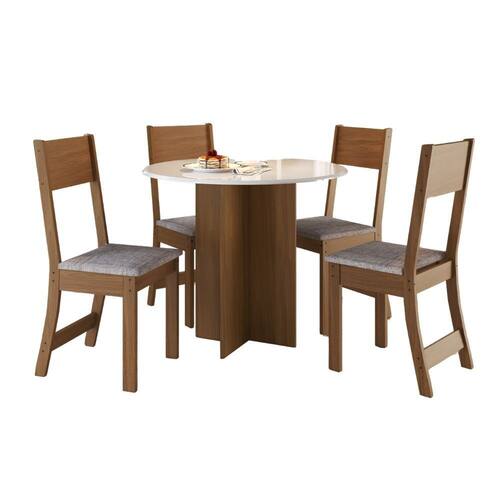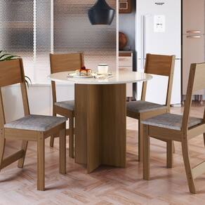 FORMATO REDONDO ? Proporciona maior integra??o entre os usu?rios e otimiza o espa?o. ESTRUTURA RESISTENTE ? Produzido em madeira com acabamento de alta qualidade. CADEIRAS COM ACABAMENTO EM LINHO ? Toque de sofistica??o e conforto para o dia a dia. IDEAL PARA AMBIENTES COMPACTOS ? Design que favorece a circula??o e aproveitamento do espa?o.