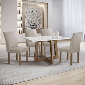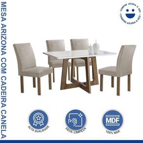 Renove sua sala de jantar com o conjunto Mesa Arizona, acompanhado por quatro cadeiras. A mesa apresenta um design contemporâneo e espaçoso, perfeito para refeições em família e pequenos encontros. As cadeiras oferecem conforto e estilo, criando um ambiente acolhedor para suas refeições. Juntos, este conjunto proporciona uma experiência agradável e elegante à mesa. Medida da Mesa (A x L x P): 79cmx120cmx90cm Peso da Mesa: 46 kg Mesa suporta até: 40.0000 Acabamento da Cadeira/Banco: Pintura Acabamento da Mesa: Pintura UV Acompanha Manual de Instalação: Sim Almofada do assento: Fixa Almofada do encosto: Fixa Ambiente Principal: Sala de Jantar Cadeira/Banco Estofada: Encosto e Assento Estofados Cadeira/Banco estofada: Encosto e Assento Estofados Cadeira/Banco suporta até: 120.0000 codigo_ean: 7909903605080 Complexidade da Montagem: Alta: deve ser montado por um montador especializado Cor: Chocolate/Off White/Bege Claro Cor do Produto: Chocolate/Off White/Bege Claro De Canto (Canto Alemão): Não Enchimento do Assento: Espuma D-23 Enchimento do Encosto: Espuma D-20 Escala de Brilho: Fosco Espessura do Tampo: 29 mm Estrutura do Assento: MDF Estrutura do Encosto: MDF Formato do Tampo: Retangular Itens Inclusos: 1 Mesa Arizona com 4 cadeiras e manual de montagem Linha ou Coleção: Arizona Manual de Montagem e Instalação: https://product-hub-prd.madeiramadeira.com.br/895719/documents/698d9e18-6c28-4252-bfa4-9ec8fc00a7aeSA20DUBAI20CADEIRA20NAPOLE.pdf Material da Base da Mesa: MDF Material da Estrutura da Cadeira: MDF Material do Tampo: Vidro/MDF Material Principal: MDF Material Principal das Cadeiras/Bancos: MDF Medida da Cadeira/Banco (A x L x P): 96,5cmx56cmx44cm Medida do Tampo (L x C x E): 120cmx90cmx2,9cm Mesa Dobrável: Não Mesa Extensível: Não Necessita Montagem: Sim Origem do Produto: Nacional Peso da Cadeira/Banco: 9,1 kg Possui Apoio para Braços: Não Possui Apoio Para os Pés: Não Possui Prateleiras: Não Possui Suporte Giratório: Não Possui Vidro: Sim Quantidade de Cadeiras: 4 Quantidade de Lugares: 04 Recomendações de Uso, Manutenção e Limpeza: Limpar apenas com pano úmido. Revestimento da Cadeira/Banco: Veludo Sistema de Montagem: Parafusos Tipo de Assento: Fixo Tipo de Encosto: Fixo Vidro Temperado: Não