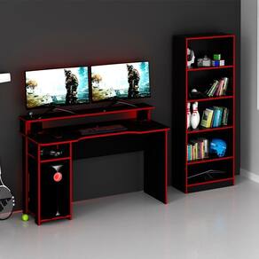 Conjunto Mesa E Armario Gamer Me4141 Me4153 Preto Vermelho Tecno Mobili Preto Vermelho