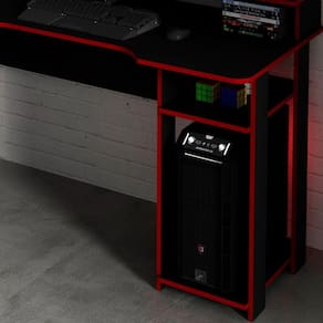Produto: 01 Mesa 01 Armário | Tonalidade: Multicolorido Cor: Preto Vermelho