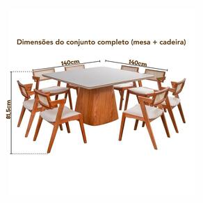 Surreal, não é mesmo? Conjunto Mesa Bergame Tampo Off White com 8 Cadeiras em Madeira Maciça, Estofada e Rattan de Fibra 100% Natural Verona Authentic traz um toque de elegância e sofisticação na sua sala de jantar, deixando o ambiente muito agradável. As mesas e cadeiras tem sua estrutura 100% em Madeira Maciça, e as cadeiras já vão 100% montadas, facilitando ainda mais. Com acabamento impecável em verniz, tem como essência a robustez e naturalidade ao mesmo tempo. Possui uma estrutura mega resistente e uma durabilidade acima da média. É realmente uma preciosidade em forma de móvel! Medida da Mesa (A x L x P): 78,5x140x140 Peso da Mesa: 68,5 kg Mesa suporta até: 150 kg Acabamento da Cadeira/Banco: Verniz Natural Acabamento da Mesa: Verniz Acompanha Manual de Instalação: Sim Almofada do assento: Fixa Altura do Conjunto: 81,5 cm Ambiente Principal: Sala de Jantar Cadeira/Banco estofada: Somente Assento Estofado Cadeira/Banco Estofada: Somente Assento Estofado Cadeira/Banco Suporta Até: 120.0000 Cadeira/Banco suporta até: 120 kg codigo_ean: 7909903906576 Complexidade da Montagem: Baixa: pode ser montado por uma pessoa sozinha Configuração do Conjunto: Mesa com Cadeiras Cor: Champagnhe/Off White Cor da Base: Marrom Cor das Cadeiras: Marrom Cor do Produto: Champagnhe/Off White Cor do Tampo: Off White Cor Flex: Não Cor Secundária: Bege De Canto (Canto Alemão): Não Design da Base: Cilindro Escala de Brilho: Semi-Brilho Espessura do Tampo: 2,6 mm Formato do Tampo: Quadrado Informações Complementares: - Todas as nossas estruturas são 100% de madeira Maciça Eucalipto- Assentos e Encostos estofados com couro sintético alto padrão, Linho Premium, Rattan de Fibra 100% Natural e Fibra- Cadeiras suportam 120 kg- Todas as cadeiras vão 100% montadas- O nosso R Itens Inclusos: Conjunto Mesa Bergame Tampo Off White com 8 Cadeiras em Madeira Maciça, Estofada e Rattan de Fibra 100% Natural Verona Authentic e kit ferragem da mesa Largura do Conjunto: 140 cm Linha ou Coleção: Authentic Manual de Especificação Técnica: https://product-hub-prd.madeiramadeira.com.br/927742/documents/a4713952-6c0e-438d-9c72-aeed3f5fe5b82299527544617253915216608.pdf Manual de Montagem e Instalação: https://product-hub-prd.madeiramadeira.com.br/927742/documents/3822080a-1a68-4707-b342-ae41f1bc8735229949954461725391376838.jpg Marca: Espresso Móveis Material da Base da Mesa: MDF Laminado/Madeira Maciça Material da Estrutura da Cadeira: Madeira Maciça Material Principal: Madeira Maciça Material Principal das Cadeiras/Bancos: Madeira Maciça Medida da Base (A x L x P): 73X66X66 Medida da Cadeira/Banco (A x L x P): 81,5 x 46,5 x 57 Medida do Tampo (L x C x E): 140X140X2,6 Mesa Dobrável: Não Mesa Extensível: Não Montagem Flex: NÃO Necessita Montagem: Sim Origem do Produto: Nacional Peso da Cadeira/Banco: 19,8 kg Possui Apoio para Braços: Não Possui Apoio Para os Pés: Não Possui Prateleiras: Não Possui Suporte Giratório: Não Possui Vidro: Sim Profundidade do Conjunto: 140 cm Quantidade de Cadeiras: 8 Quantidade de Lugares: 08 Recomendações de Uso, Manutenção e Limpeza: Para manter seu móvel novo por muito mais tempo, evite locais úmidos, mantenha-o distante de líquidos. Para limpá-lo com segurança utilize uma flanela seca sem produtos abrasivos, que por sua vez desgastam o produto. Sistema de Montagem: Sim Tipo de Assento: Fixo Tipo de Encosto: Fixo