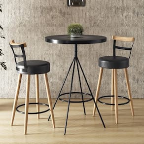 Conjunto Mesa Bistrô Viena e 2 Banquetas Moscou 98cm - Salaone O Conjunto Mesa Bistrô Viena e 2 Banquetas Moscou proporciona uma experiência única em termos de design e praticidade. A Mesa Bistrô Viena oferece uma opção ideal para quem busca durabilidade e estilo. Sua estrutura em aço e o tampo de MDF revestido em couro sintético proporcionam resistência, criando um ambiente aconchegante e elegante. A Banqueta Moscou é perfeita para adicionar estilo ao seu ambiente, ela apresenta pés de madeira de eucalipto, encosto em aço e assento confortável. Essa banqueta é ideal para tornar o seu dia a dia mais estiloso e confortável.