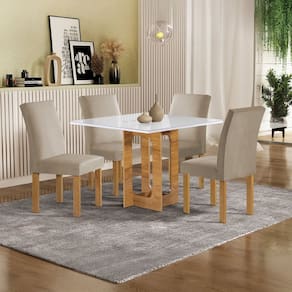 O Conjunto Mesa Carolina 90cm x 90cm com 4 Cadeiras Espanha traz um toque de sofisticação e praticidade para sua sala de jantar. O tampo Dakota Plus com vidro Off White oferece um acabamento elegante, além de ser de fácil manutenção, perfeito para o dia a dia. As Cadeiras Espanha foram projetadas para garantir conforto e estabilidade, proporcionando uma experiência agradável em cada refeição. Compacto e funcional, este conjunto é ideal para espaços menores.