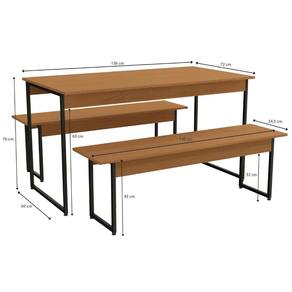 Seu design funcional permite acomodar os bancos sob a mesa quando não estão em uso, tornando o conjunto ideal também para ambientes compactos.