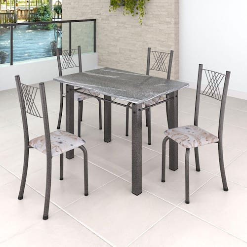Quer deixar sua casa completa com um toque especial? Uma dica bacana de como transformar sua cozinha, deixando-a mais receptiva e bonita? Então você precisa de móveis indispensáveis para deixar seu lar muito mais aconchegante, receptivo e sempre disponível para receber a visita de amigos, familiares e convidados. Você vai se apaixonar por este incrível Conjunto de Mesa com 4 Cadeiras. Ideal para cozinha, ele é a melhor opção para completar o espaço. Aproveite!! Acabamento da Cadeira/Banco: Pintura Texturizada Acabamento da Mesa: Pintura Texturizada Almofada do assento: Fixa Ambiente Principal: Cozinha Cadeira/Banco estofada: Sim Cadeira/Banco suporta até: 120 kg Complexidade da Montagem: Baixa: pode ser montado por uma pessoa sozinha Cor: Botanic Bege/Martelado Prata Cor do Produto: Botanic Bege/Martelado Prata Enchimento do Assento: Espuma D-16 Escala de Brilho: Semi-Brilho Espessura do Tampo: 20 mm Estrutura do Assento: Assento em MDP de 15mm com couríssimo. Itens Inclusos: 1 Mesa, 4 Cadeiras, Kit Ferragens e Manual de Montagem Manual de Especificação Técnica: https://cdn2.madeiramadeira.com.br/atributo/soma-moveis-ltda/1308960-manual-de-montagem-cadeira-tubular-para-sala-de-jantar-v-01-yescasa.pdf Manual de Montagem e Instalação: https://cdn2.madeiramadeira.com.br/atributo/soma-moveis-ltda/1308959-manual-de-montagem-mesa-tubular-para-sala-de-jantar-v-01-yescasa.pdf Material da Base da Mesa: Aço Material da Estrutura da Cadeira: Aço Medida da Base (A x L x P): 74,3 x 108 x 63,5 Medida da Cadeira/Banco (A x L x P): 95 x 40 x 37 Medida da Mesa (A x L x P): 75 x 60 x 100 Medida do Tampo (L x C x E): 60 x 100 x 1,5 Mesa suporta até: 8 kg Necessita Montagem: Sim Origem do Produto: Nacional Peso da Cadeira/Banco: 2,94 kg Peso da Mesa: 45,04 kg Possui Apoio Para os Pés: Não Possui Suporte Giratório: Não Recomendações de Uso, Manutenção e Limpeza: Não permitir que molhe os pés da base, usar um pano de tecido macio e seco, evitar detergentes, alvejantes e produtos químicos de limpeza; no tampo usar tecido macio levemente umedecido. Revestimento da Cadeira/Banco: Couro Ecológico Sistema de Montagem: Parafuso