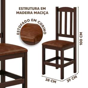 Dimensões da Cadeira: Largura 38 cm; Profundidade 39 cm; Altura 100 cm.