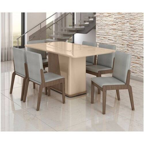 A sala de jantar é o verdadeiro coração da casa, o cenário das memórias que construímos e dos laços que fortalecemos. Apresentamos o Conjunto Harmonia, um investimento em qualidade de vida e beleza duradoura. Não se trata apenas de um móvel, mas sim do novo palco dos seus encontros e celebrações. Imagine a sua família reunida, desfrutando de longas conversas sem pressa, confortavelmente acomodados em nossas 4 cadeiras com estofamento premium, pensadas para acolher e proporcionar o máximo de bem-estar. A mesa é a peça central da sua decoração, com um imponente tampo em MDF e Vidro e uma estrutura robusta que garante anos de durabilidade e elegância. Acabamento: Pintura UV Altura do Conjunto: 90.5 cm Ambiente Principal: Sala de Jantar codigo_ean: 7900288287137 Cor: Carvalho/Cinza Cor do Produto: Carvalho/Cinza Informação Complementar: 1x Mesa para Sala de Jantar 6 Lugares 1 Porta Harmonia Carvalho/Cinza Largura: 160 cm Altura: 76 cm Peso: 67,1 kg Profundidade: 90 cm Necessita Montagem: Sim
