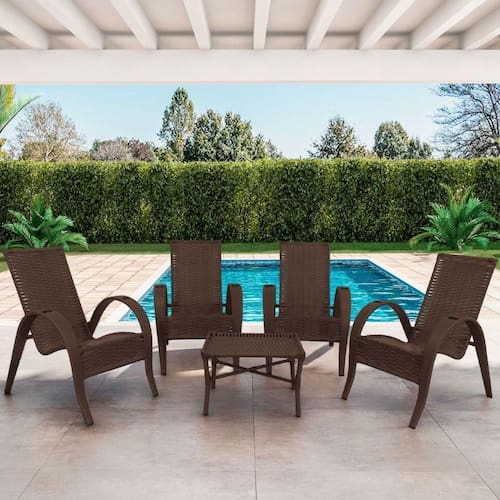 Conjunto Mesa De Centro 4 Cadeiras Vitória área Externa Tabaco Cadeira de Area Externa Vitoria de Aco Carbono e Fibra Sintetica A Cadeira Vitoria oferece conforto e sofisticacao para o seu espaco de lazer! Fabricada em aco carbono de alta qualidade, com acabamento em fibra sintetica sendo totalmente revestido. A cadeira Vitoria e perfeita para o seu descanso e receber seus amigos e familiares em festas e almocos aos finais de semana. ESPECIFICACOES TECNICAS: -Material da Estrutura: Aco Carbono; -Material do Assento: Fibra sintetica; -Material do Encosto: Fibra sintetica; -Quantidade de Lugar: 1 Lugar; -Quantidade de Cadeira: 4 Cadeiras; -Dobravel? Nao; -Peso Total Suportado: 120kg; -Garantia: 3 Meses; -Necessita de Montagem: Nao; -Instrucoes de Cuidado: Limpar com pano umedecido e sabao neutro; -Dimensoes do Produto (LarguraXProfundidadeXAltura): 65x80x88cm; -Conteudo da Embalagem: 4 Cadeiras;