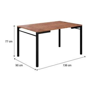 Mesa de Sala Jantar 1526 + Tampo Madeirado 136x90cm Preto/Native - Carraro