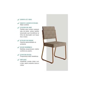 Dimensões(Cm): Comprimento(Profundidade): 52cm x Largura: 46cm x Altura: 90cm Tipo de Pintura - UV Tipo de Acabamento da Pintura - Fosco Tipo do Assento - Estofado Tipo de Encosto - Estofado Tipo dos Pés - Pés Metálicos Certificação de Qualidade - Qualidade Aprovada Garantia - 3 meses
