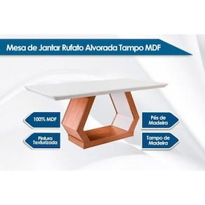 Mesa de Sala Jantar Alvorada c/ Tampo 180x90cm Madeirado Canto Reto - Imbuia/Off White - Rufato