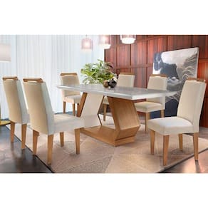 Sala de Jantar Completa Alvorada Tampo Madeirado c/ Vidro Canto Reto 180x90cm e 6 Cadeiras Athenas Capuccino/Suede Creme - Rufato Abaixo segue os produtos do KIT: Sala de Jantar Completa Alvorada Tampo Madeirado c/ Vidro Canto Reto 180x90cm e 6 Cadeiras Athenas Capuccino/Suede Creme - Rufato