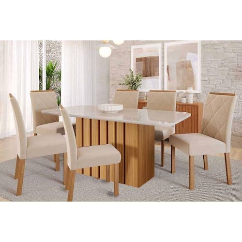 Sala de Jantar Completa Ana Tampo Madeirado c/ Vidro 180x90cm e 6 Cadeiras Fernanda Nature/Off White - Carvalho/Suede Nude Bege - Cimol Abaixo segue os produtos do KIT: Sala de Jantar Completa Ana Tampo Madeirado c/ Vidro 180x90cm e 6 Cadeiras Fernanda Nature/Off White - Carvalho/Suede Nude Bege - Cimol