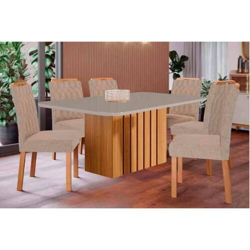 Sala de Jantar Completa Ana Tampo Madeirado c/ Vidro 180x90cm e 6 Cadeiras Juliana Cinamomo/Off White - Carvalho/Suede Nude Bege - Cimol Abaixo segue os produtos do KIT: Sala de Jantar Completa Ana Tampo Madeirado c/ Vidro 180x90cm e 6 Cadeiras Juliana Cinamomo/Off White - Carvalho/Suede Nude Bege - Cimol