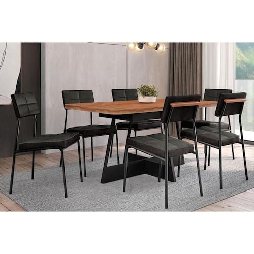 Sala de Jantar Completa Átria 1592 Aço c/ Tampo Madeirado 160x90cm e 6 Cadeiras Neo Preto/Nogal - Preto/Grafite - Preto - Carraro Abaixo segue os produtos do KIT: Sala de Jantar Completa Átria 1592 Aço c/ Tampo Madeirado 160x90cm e 6 Cadeiras Neo Preto/Nogal - Preto/Grafite - Preto - Carraro