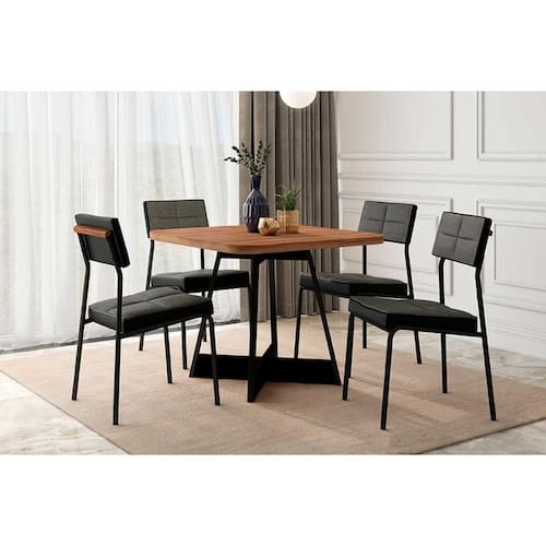 Sala de Jantar Completa Átria 1593 Aço c/ Tampo Madeirado 90x90cm e 4 Cadeiras Neo Preto/Nogal - Preto/Grafite - Preto - Carraro Abaixo segue os produtos do KIT: Sala de Jantar Completa Átria 1593 Aço c/ Tampo Madeirado 90x90cm e 4 Cadeiras Neo Preto/Nogal - Preto/Grafite - Preto - Carraro
