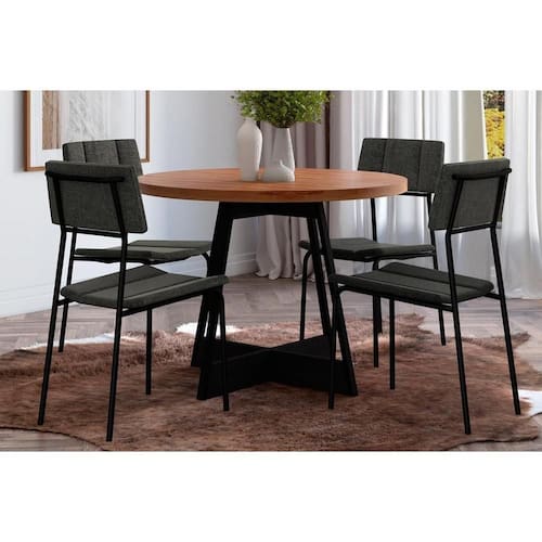 Sala de Jantar Completa Átria 1594 Aço c/ Tampo Madeirado 100cm e 4 Cadeiras Lou Preto/Nogal - Preto/Grafite - Carraro