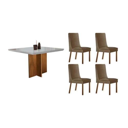 Sala de Jantar Completa Berlim c/ Tampo Madeirado c/ Vidro Canto Curvo 90x90cm e 4 Cadeiras Dakota Naturale/Off White - Suede Capuccino - Rufato Abaixo segue os produtos do KIT: Sala de Jantar Completa Berlim c/ Tampo Madeirado c/ Vidro Canto Curvo 90x90cm e 4 Cadeiras Dakota Naturale/Off White - Suede Capuccino - Rufato