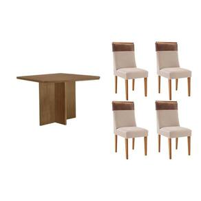 Sala de Jantar Completa Berlim c/ Tampo Madeirado Canto Curvo 90x90cm e 4 Cadeiras Jaspe Naturale - Suede Creme - Rufato Abaixo segue os produtos do KIT: Sala de Jantar Completa Berlim c/ Tampo Madeirado Canto Curvo 90x90cm e 4 Cadeiras Jaspe Naturale - Suede Creme - Rufato
