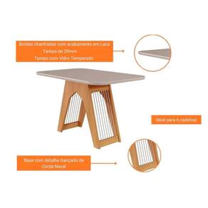Mesa de Sala Jantar Carol c/ Tampo Madeirado c/ Vidro 180x90cm Nature/Off White - Cimol