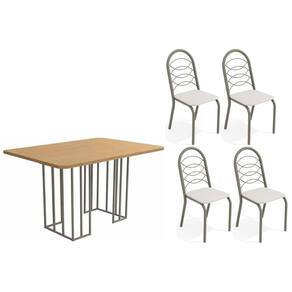 Sala de Jantar Completa Duina c/ Tampo de Madeira 136cm e 4 Cadeiras Holanda Niquel/Freijo - Courano Branco - Kappesberg Abaixo segue os produtos do KIT: Sala de Jantar Completa Duina c/ Tampo de Madeira 136cm e 4 Cadeiras Holanda Niquel/Freijo - Courano Branco - Kappesberg