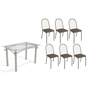 Conjunto: Mesa De Cozinha Elba C/ Tampo De Vidro 120cm E 6 Cadeiras Noruega Niquel - Courano Marrom - Kappesberg