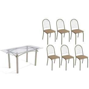 Sala de Jantar Completa Elba c/ Tampo de Vidro 150cm e 6 Cadeiras Noruega Niquel - Courano Capuccino - Kappesberg Abaixo segue os produtos do KIT: Sala de Jantar Completa Elba c/ Tampo de Vidro 150cm e 6 Cadeiras Noruega Niquel - Courano Capuccino - Kappesberg