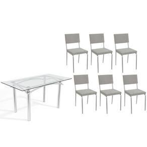 Conjunto: Mesa De Cozinha Elba C/ Tampo De Vidro 150cm E 6 Cadeiras Zaria Cromada - Boucle Cinza - Kappesberg