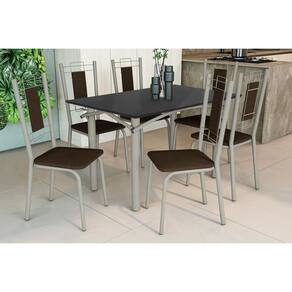 Sala de Jantar Completa Elba Tampo Madeirado c/ Vidro 120cm e 6 Cadeiras Florença Niquel/Preto - Courano Marrom - Kappesberg Abaixo segue os produtos do KIT: Sala de Jantar Completa Elba Tampo Madeirado c/ Vidro 120cm e 6 Cadeiras Florença Niquel/Preto - Courano Marrom - Kappesberg