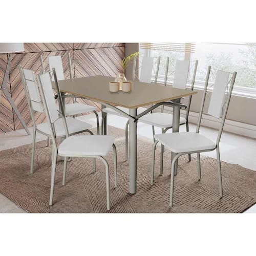 Sala de Jantar Completa Elba Tampo Madeirado c/ Vidro 120cm e 6 Cadeiras Lisboa Niquel/Freijo Bronze - Courano Branco - Kappesberg Abaixo segue os produtos do KIT: Sala de Jantar Completa Elba Tampo Madeirado c/ Vidro 120cm e 6 Cadeiras Lisboa Niquel/Freijo Bronze - Courano Branco - Kappesberg