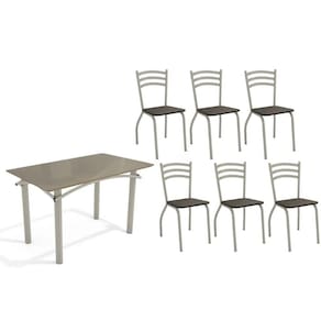 Sala de Jantar Completa Elba Tampo Madeirado c/ Vidro 120cm e 6 Cadeiras Portugal Niquel/Freijo Bronze - Courano Marrom - Kappesberg Abaixo segue os produtos do KIT: Sala de Jantar Completa Elba Tampo Madeirado c/ Vidro 120cm e 6 Cadeiras Portugal Niquel/Freijo Bronze - Courano Marrom - Kappesberg