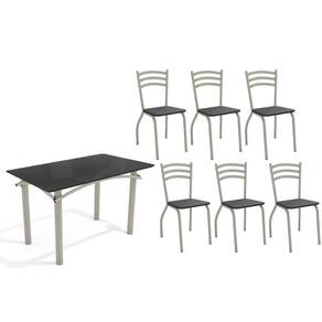 Sala de Jantar Completa Elba Tampo Madeirado c/ Vidro 120cm e 6 Cadeiras Portugal Niquel/Preto - Courano Preto - Kappesberg Abaixo segue os produtos do KIT: Sala de Jantar Completa Elba Tampo Madeirado c/ Vidro 120cm e 6 Cadeiras Portugal Niquel/Preto - Courano Preto - Kappesberg
