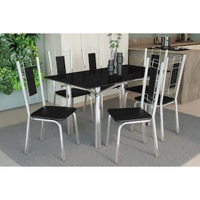 Sala de Jantar Completa Elba Tampo Madeirado c/ Vidro 160cm e 6 Cadeiras Florença Cromada/Preto - Courano Preto - Kappesberg Abaixo segue os produtos do KIT: Sala de Jantar Completa Elba Tampo Madeirado c/ Vidro 160cm e 6 Cadeiras Florença Cromada/Preto - Courano Preto - Kappesberg