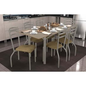 Sala de Jantar Completa Elba Tampo Madeirado c/ Vidro 160cm e 6 Cadeiras Portugal Niquel/Freijo Bronze - Courano Capuccino - Kappesberg Abaixo segue os produtos do KIT: Sala de Jantar Completa Elba Tampo Madeirado c/ Vidro 160cm e 6 Cadeiras Portugal Niquel/Freijo Bronze - Courano Capuccino - Kappesberg