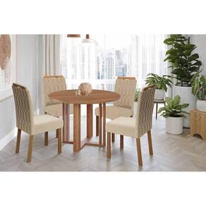 Sala de Jantar Completa Flora Tampo Madeirado 109cm e 4 Cadeiras Paola Cinamomo - Carvalho/Linho Bege - Cimol Abaixo segue os produtos do KIT: Sala de Jantar Completa Flora Tampo Madeirado 109cm e 4 Cadeiras Paola Cinamomo - Carvalho/Linho Bege - Cimol