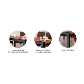 Dimensões(Cm): Comprimento(Profundidade): 90cm x Largura: 130cm x Altura: 78cm Material de Estrutura - Estrutura em MDF Tipo de Pintura - UV Tipo de Acabamento da Pintura - Pintura Alto Brilho ou Fosca Espessura da Estrutura do Tampo - 15 Tipo dos Pés - Pés Maciços em MDF Montagem do Produto - Desmontável Certificação de Qualidade - Qualidade Aprovada Garantia - 3 meses
