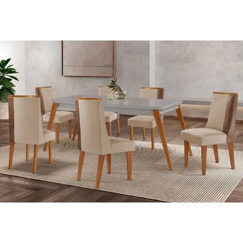Sala de Jantar Completa Havana c/ Tampo Madeirado c/ Vidro Canto Curvo 180x90cm e 6 Cadeiras Tilia Naturale/Off White - Suede Creme - Rufato Abaixo segue os produtos do KIT: Sala de Jantar Completa Havana c/ Tampo Madeirado c/ Vidro Canto Curvo 180x90cm e 6 Cadeiras Tilia Naturale/Off White - Suede Creme - Rufato