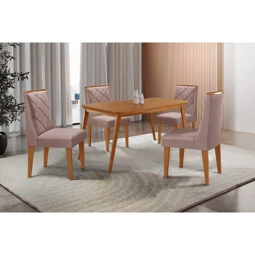 Sala de Jantar Completa Havana c/ Tampo Madeirado Canto Curvo 120x80cm e 4 Cadeiras Pietá Naturale - Linho Capuccino - Rufato Abaixo segue os produtos do KIT: Sala de Jantar Completa Havana c/ Tampo Madeirado Canto Curvo 120x80cm e 4 Cadeiras Pietá Naturale - Linho Capuccino - Rufato