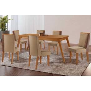 Sala de Jantar Completa Havana c/ Tampo Madeirado Canto Curvo 180x90cm e 6 Cadeiras Tilia Naturale - Linho Bege - Rufato Abaixo segue os produtos do KIT: Sala de Jantar Completa Havana c/ Tampo Madeirado Canto Curvo 180x90cm e 6 Cadeiras Tilia Naturale - Linho Bege - Rufato