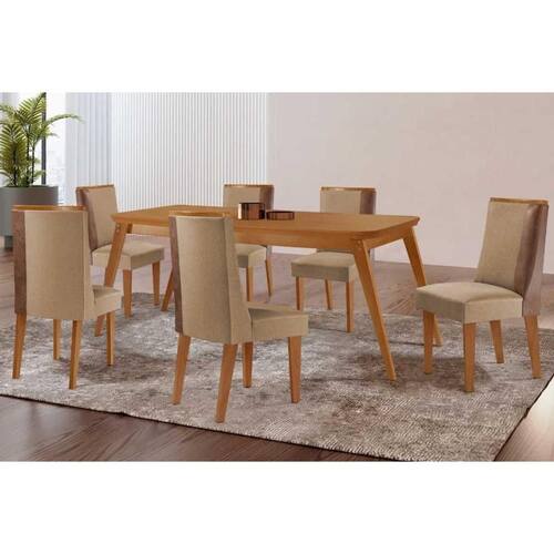 Cadeira Sala de Jantar Tília Kit 2 un Naturalle/Linho Bege Turim/Corano Capuccino - Rufato