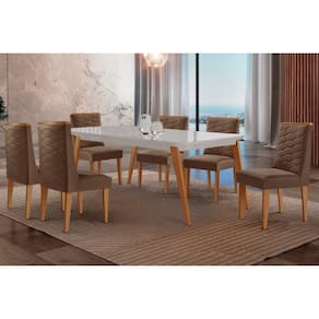 Sala Jantar Mesa Havana Curvo 180cm + 6 Cadeiras Dafne Naturale/Off White - Suede Marrom - Rufato